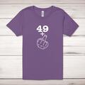 29+, 39+, 49+ or 59+ Middle Finger Adult T-Shirt A rude adult t-shirt with 29+, 39+, 49+ or 59+ and An Extended Middle Finger (alternatively choose your own age) printed across the front of a 100%...