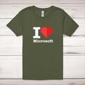 I Love Microsoft Adult T-Shirt A geeky adult t-shirt with "I Love Microsoft" printed across the front of a 100% cotton* t-shirt. This geeky t-shirt is great as a gift for any occasion. All of ou...