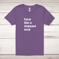 Slapped Arse Adult T-Shirt A rude adult t-shirt with "face like a slapped arse" printed across the front of a 100% cotton* unisex t-shirt. This rude t-shirt is great as a gift for any occasion. ...