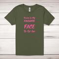 Favourite Face Adult T-Shirt A rude adult t-shirt with "Yours Is My Favourite Face To Sit On" printed across the front of a 100% cotton* t-shirt. This rude t-shirt is great as a gift for any occ...