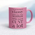 I'm An Intelligent Classy Woman Mug A rude mug with "I'm An Intelligent Classy Well Educated Woman Who Says ... A Lot" on both sides. Simple and straight to the point this rude mug is great as a...