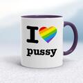 I Love Pussy Pride Mug A rude mug with "I Love Pussy" with a Pride rainbow heart printed on both sides. Simple and straight to the point this rude mug is great as a gift for any occasion. Our I ...