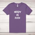 Needy As Fuck Adult T-Shirt A rude unisex adult t-shirt with "Needy As Fuck" printed across the front of a 100% cotton* t-shirt. This rude t-shirt is great as a gift for any occasion. All of our...