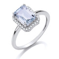Diamond Rings in Silver 925 and 2.10 Carat Aquamarine