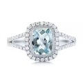 Halo Diamond Rings in Silver 925 and 2.18 Carat Aquamarine