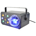 5 in Effect Light. Mini RGBUV LED Wash Lenses. RGBA LED Effect. Red & Green Laser. White SMD Strobe Effect. Sound to Light & Master/Slave Operation. DMX via 3- 9- 11 or 28 ChannelsMains Input: 100...