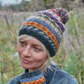 Bands of knitted stars in rich earthy colours. This hat shows finer detail in the knitting. It's soft and comfortable and will look great while you kick through the autumn levaes.Womens hand knitt...